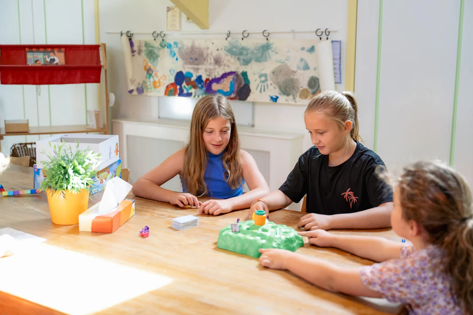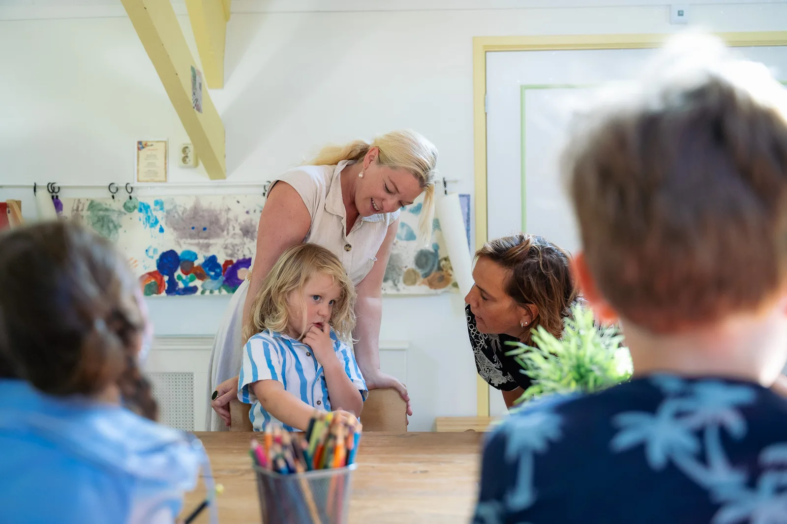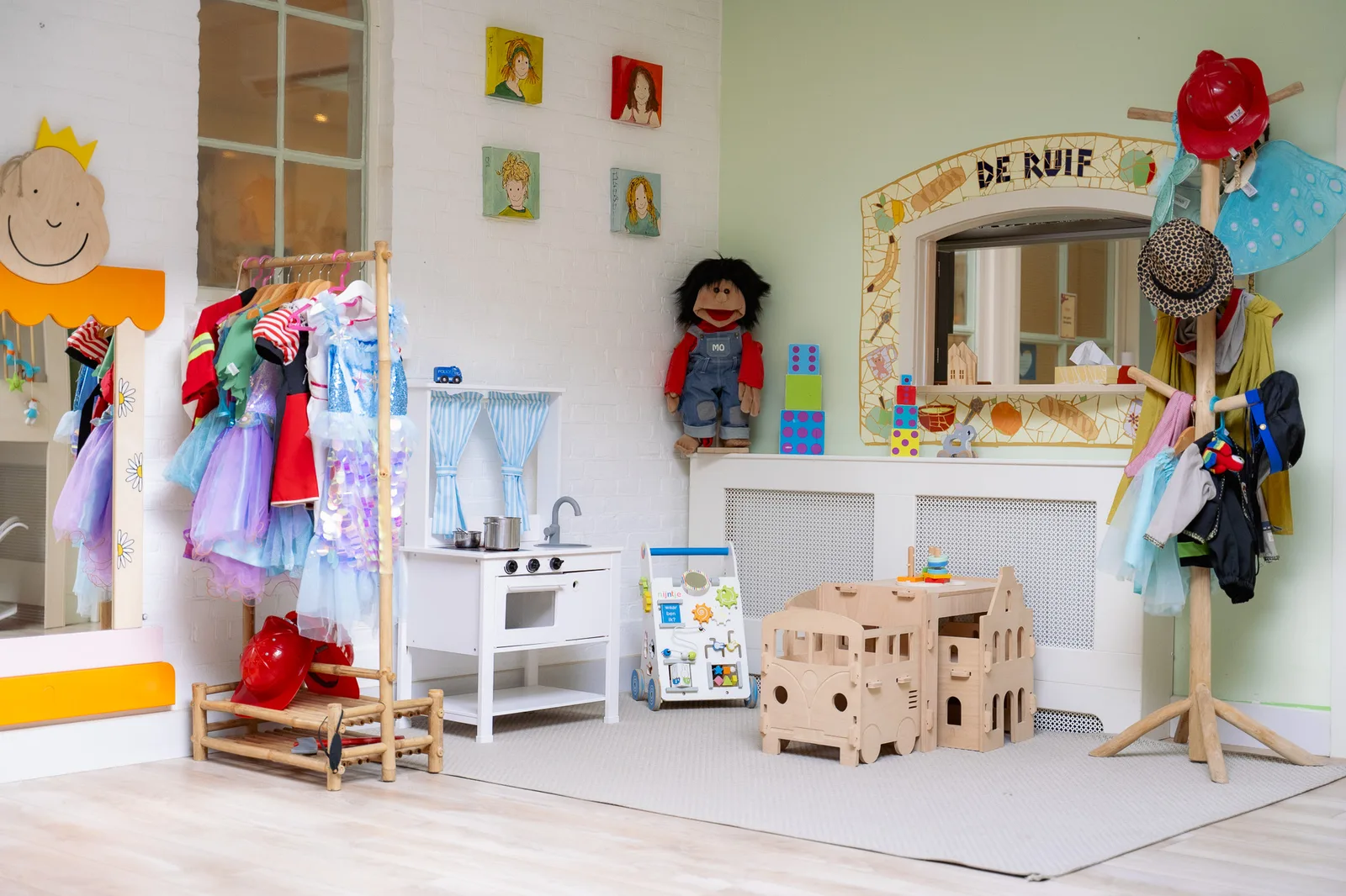De sfeervolle binnenruimtes van De Boerderij ademen geschiedenis. Hoge plafonds, authentieke details en een warme inrichting maken het een bijzondere plek om op te groeien. Alle groepen hebben hun eigen vaste plek: overzichtelijk, huiselijk en uitnodigend om te spelen, knutselen, voorlezen en samen te eten.